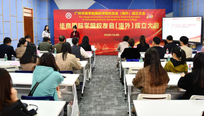 On the occasion of the 15th anniversary of Guangzhou Huashang College (the former Huashang College of Guangdong University of Finance & Economics), the Inaugural Ceremony of the Overseas Alumni Association of International School was held in classroom 401 of Qizhi Building on December 26th.