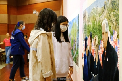 The lecture started by inviting the audience to view the scrolls closely on the stage to get a clearly detailed understand of these works. Witnessing the exquisite and delicate paintings, students were amazed by the craftsmanship of the artist. Mr. Yang introduced the historical events and significance represented by the works: Journey of Friendship, Footprints-From Liangjiahe to Zhongnanhai, and Monument to the People’s Heroes. In addition, he mentioned that these paintings integrated traditional embroidery techniques with his photographic works. To assist learning, two videos were shown to help students better understand the painstaking photography process and the unique creating process of the scrolls. He hoped that students could appreciate the cultural atmosphere and the fighting spirit of the revolutionist through his speech.