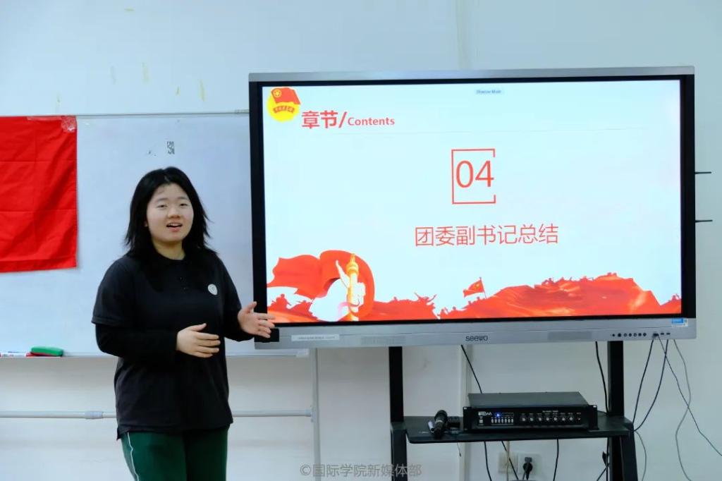 首先,谢婷婷同学对国际学院4月期间的各个团生活动以及本次团生总结大会做出了简要概括,并鼓励大家今后多多参与我院的团生活动,增进对党团的基本知识和精神的了解。