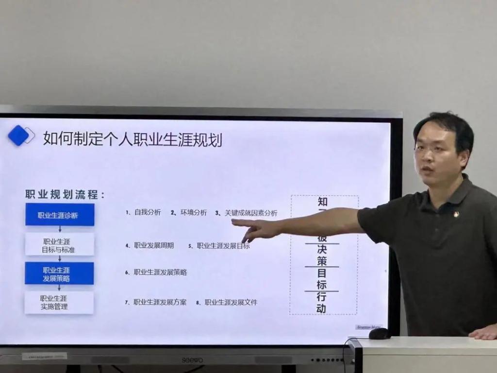 会议伊始,杨李军老师主讲了“‘职‘引人生,筑梦启航“的专题团课,引领同学们在新的学期以积极进取的精神斗志发展自己,不负青春,奋力前行。杨老师表示,新时代青年,要有自己明确的目标,告诫我们:作为一名大学生,要学会寻找自己的方向和追求,明确自己的目标,并叮嘱众青年有无目标对人生道路影响的重要性,论有目标和无目标的区别和规划的意义。其次,就如何制定个人职业生涯规划提出了以下观点和建议: