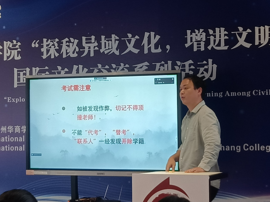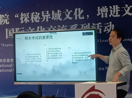 12月13日,国际学院在启智楼501召开了考风考纪大会暨期末动员大会。本次大会旨在加强学生考试纪律意识,提高学术诚信水平,为期末考试营造良好的学习氛围。学院辅导员杨李军老师及全体学生参加了本次大会。