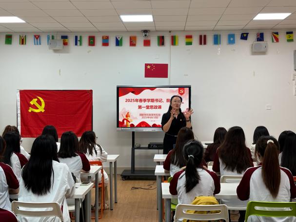 为深入学习习近平新时代中国特色社会主义思想,全面推进党的二十大精神深入人心,引领国际学院学子坚定不移听党话、跟党走,感党恩,提高党性觉悟。2025年4月10日,国际学院直属党支部在启智楼412教室组织开展了2025年春季学期书记第一堂思政课。本次课程由国际学院直属党支部书记回雁雁主讲,主题为“自由之屋与限制的围墙——从制度建设角度谈合格共产党员的标准”。国际学院直属党支部党员师生、发展对象和入党积极分子约50人参加了党课。。