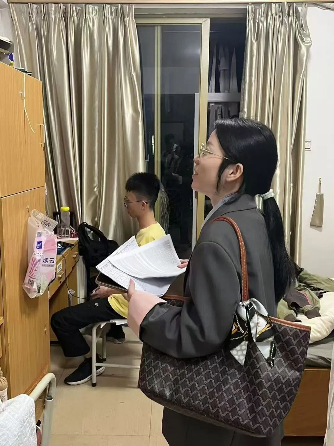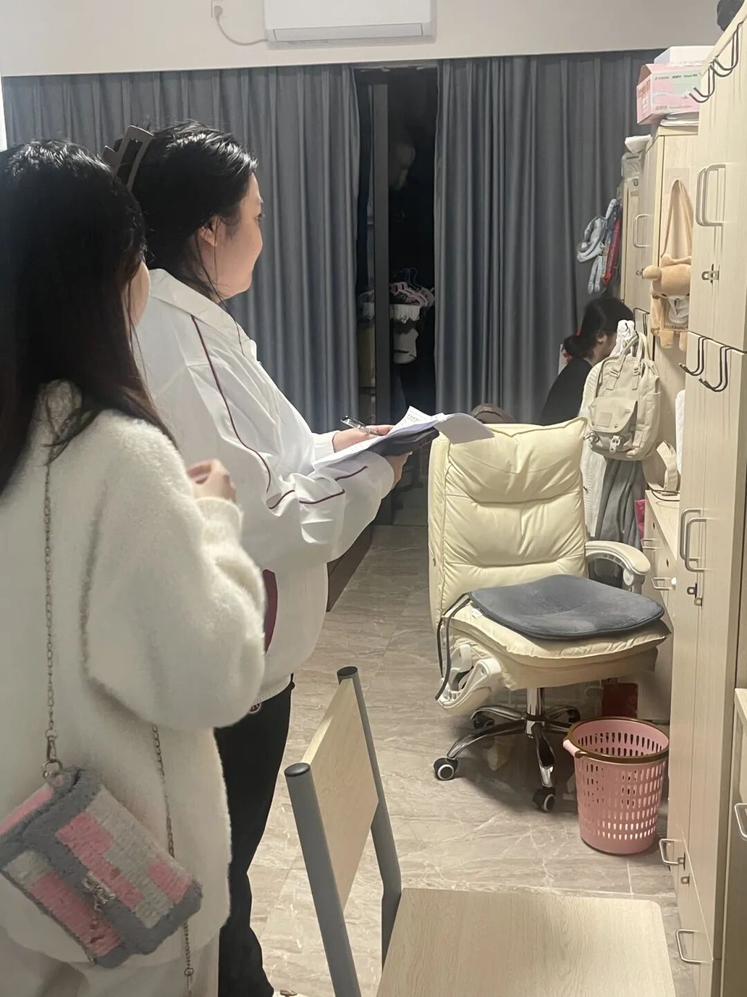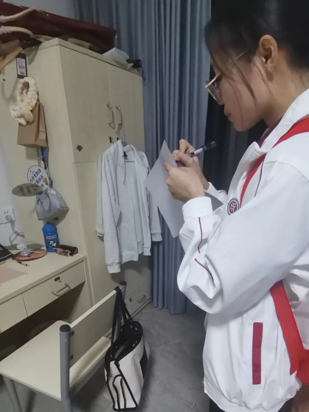 在宿舍检查前,国际学院学工办主任关慧慧老师对全体参与本次宿舍检查工作的师生进行培训,提出了此次检查的相关要求,提醒重点检查宿舍卫生、安全隐患、违规违纪行为,如是否存在使用违规电器、私藏刀具、养宠物、在宿舍内吸烟、在宿舍从事经营活动(如卖烟酒、面包等)的情况,关老师还叮嘱大家认真做好记录,根据各宿舍情况,填写宿舍检查评分表,进行公平公正评分,最终按照总分高于90分的标准评选出“整洁宿舍”。