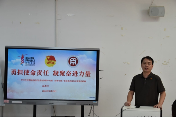 9月19日,国际学院团委在启智楼405教室举行了“勇担使命责任,凝聚奋进力量”的主题团课活动,本次团课由国际学院团委书记杨李军老师主讲,旨在激发青年学生的勇于担当精神,为实现中华民族伟大复兴贡献力量。