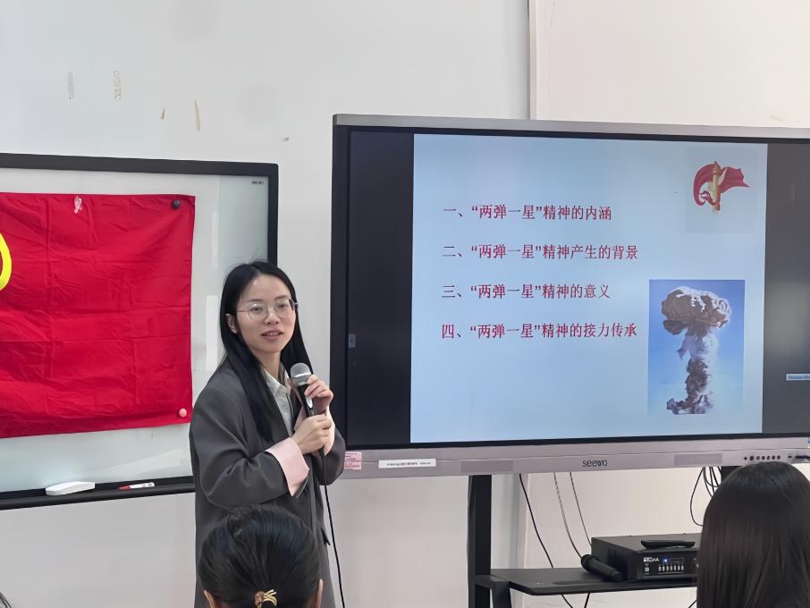 为引导大学生传承红色基因、激发奋进力量、厚植爱国情,值此中国第一颗原子弹爆炸成功60周年之际,郝自秀同志以“两弹一星”重要历史事件为例,带领国际学院党团员学生开展“两弹一星”精神学习。