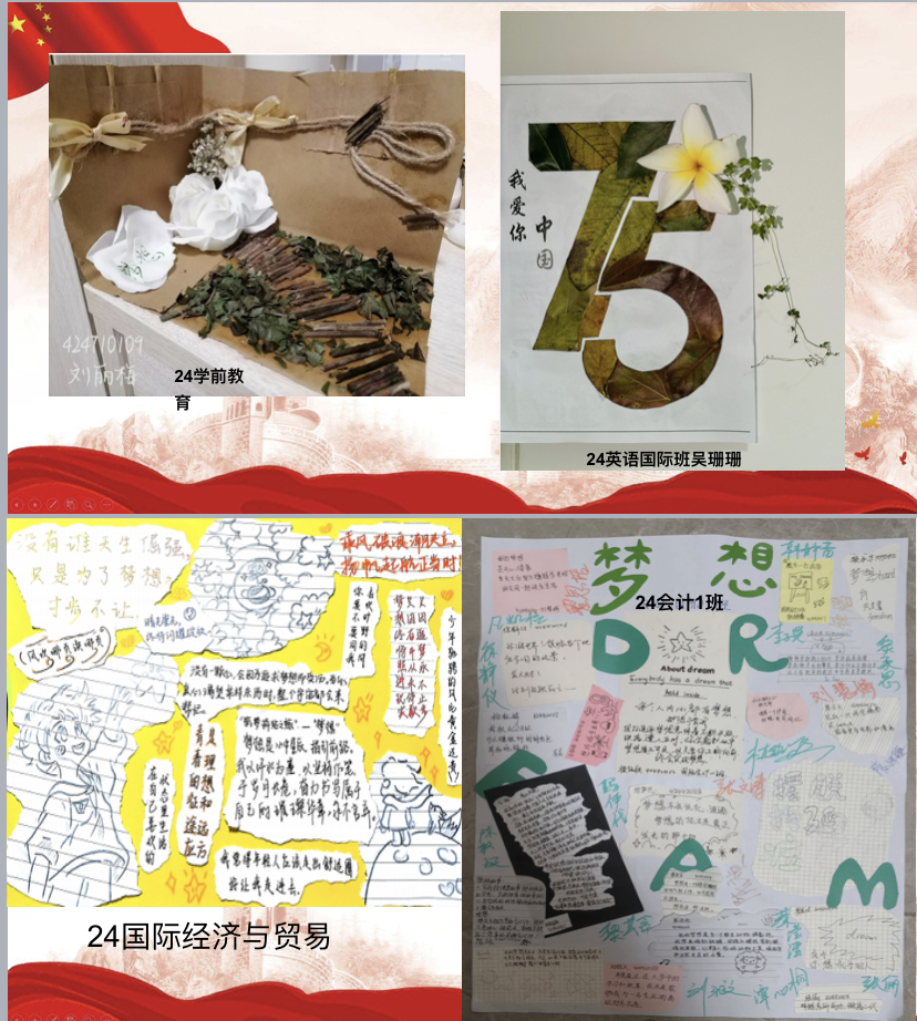 作品以“梦想”为主题,充分利用废旧杂志、树叶、花草、纸张、麻绳、等材料,通过文字书写、绘画、剪纸等形式,融入了同学们的想法与创意,最终以拼贴画的形式展现出来。每一幅拼贴画都像是一扇通往梦想的窗户,表达了同学们丰富多彩的情感世界以及对梦想的追求。作品以个人形式或小组形式完成,集体作品更加体现了同学们情感的交流与思想的碰撞,体现了同学们的团结友爱精神。