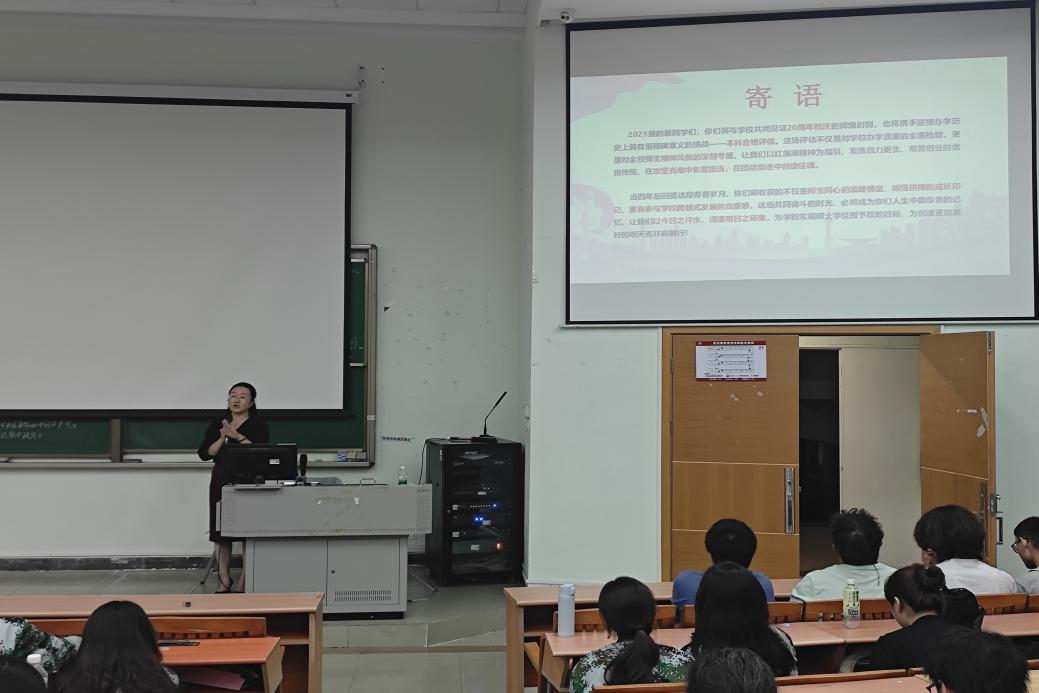 为引导大学生深刻领会中国共产党人精神谱系的丰富内涵,弘扬伟大建党精神,赓续红色血脉,筑牢理想信念根基,2025年9月29日,国际学院院长兼直属党支部书记回雁雁以“永不磨灭的精神丰碑——从红旗渠看奋斗之魂与信仰之力”为题,为2025级全体新生讲授了2025年秋季学期书记/院长思政第一课。