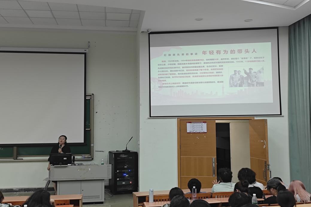 回雁雁书记以毛泽东主席在1956年中共八届二中全会上提出的“人是要有一点精神的”论述作为开篇,结合《愚公移山》这一经典寓言所蕴含的奋斗精神,引出了中国共产党人精神谱系中的光辉篇章——“红旗渠精神”。她结合在红旗渠干部学院的学习收获与深入思考,围绕红旗渠的建设背景、艰苦历程、英雄事迹与时代价值,为同学们作了系统而深刻的阐述。
