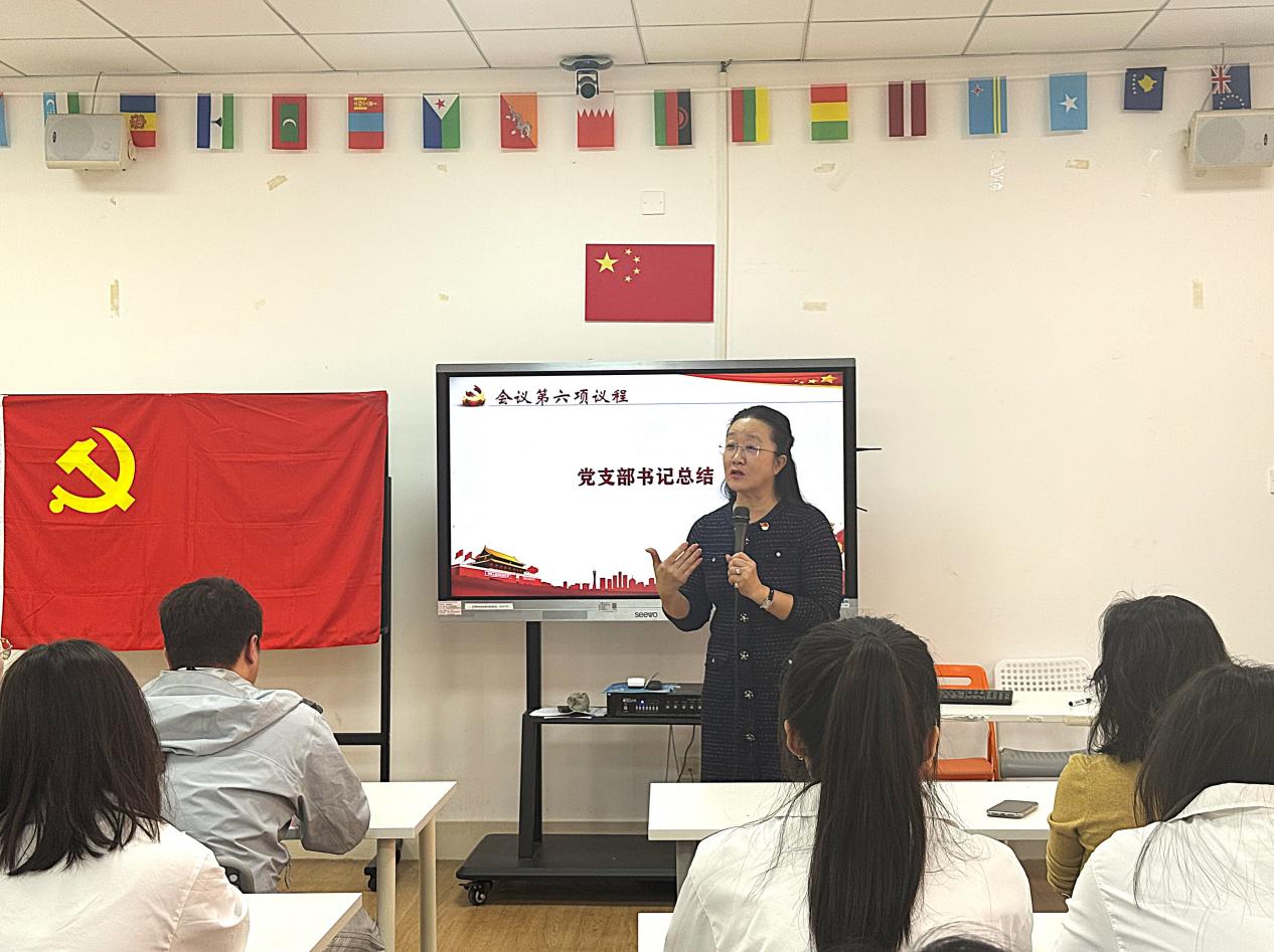 最后,由国际学院直属党支部书记回雁雁同志对本次通表大会进行总结发言。回书记对三位新转为预备党员表示由衷地祝贺,并对全体与会同志,特别是入党积极分子,提出了殷切期望。她强调,组织上入党一生一次,思想上入党一生一世,全体党员必须持续加强党性锻炼;积极分子更应以党员标准严格要求自己,