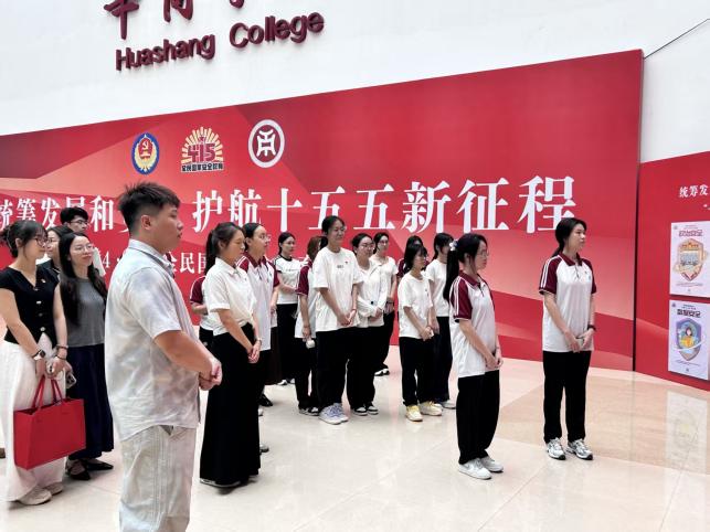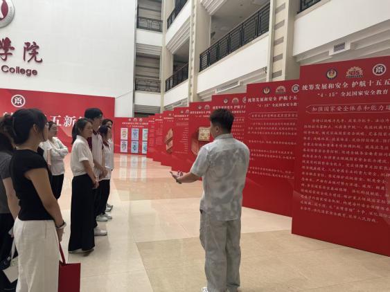 2026年4月15日是第11个全民国家安全教育日当天,广州华商学院举办了以“统筹发展和安全,护航‘十五五’新征程”为主题的系列宣传教育活动。为扎实开展国家安全教育宣传,切实增强师生安全意识、筑牢安全防线,当日下午,在国际学院学工负责人兼直属党支部组织委员吴锦涛同志的带领下,支部师生党员、发展对象及入党积极分子共25人前往广州校区中央图书馆,参观国家安全主题展览。