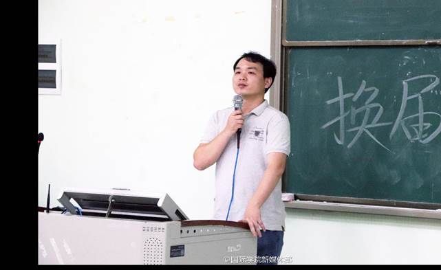 大会进行到第四项议程:杨李军老师为上学期表现优秀的部门负责人和优秀干事颁发奖状。国际学院学生会执行主席孙一凡宣布新一届的学生会成员的名单。