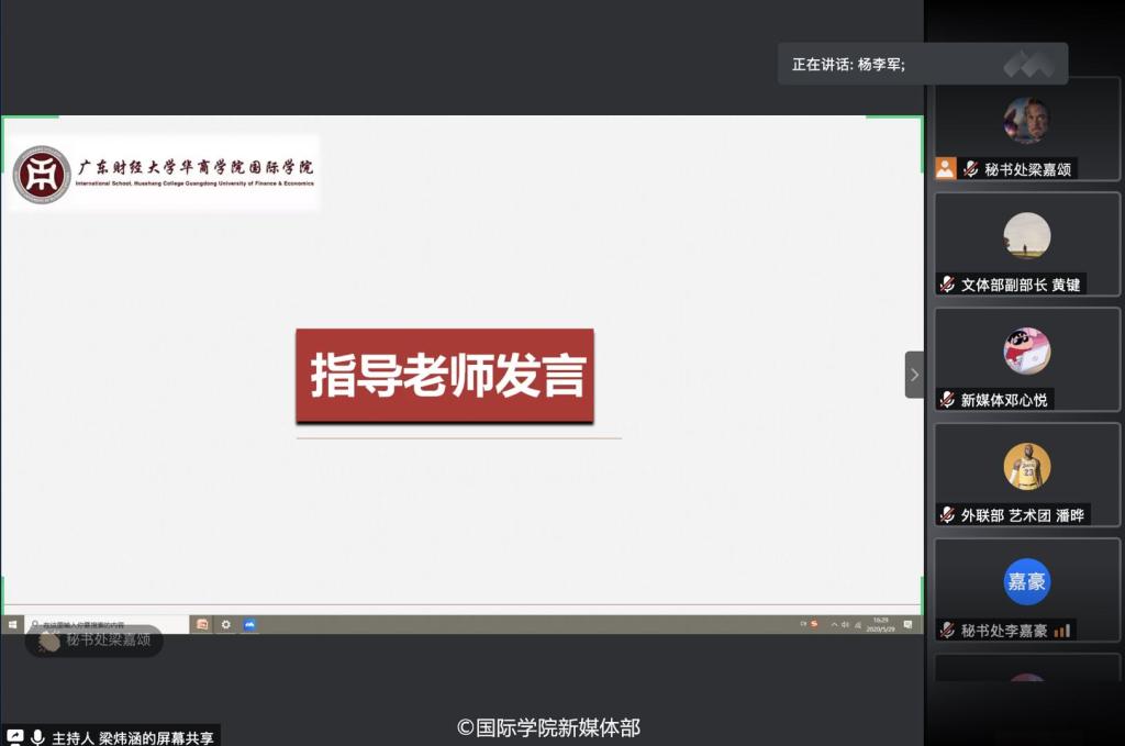 2020年5月29日下午15:30,华商国际学院于举行了第二届线上学生会换届大会。出席本次大会的嘉宾有华商国际学院辅导员杨李军老师、华商国际学院辅导员助理林翠霞老师及华商国际学院学生会全体成员。