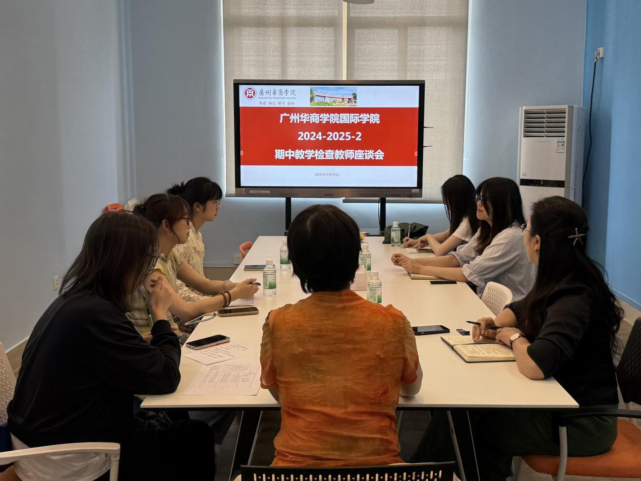 国际学院于2025年4月30日在启智楼408召开了期中教学检查教师座谈会。回雁雁院长,张真副院长、教学秘书何家丽、专任教师王咏悦老师、熊卫老师、蒋雯睿老师参加会议。