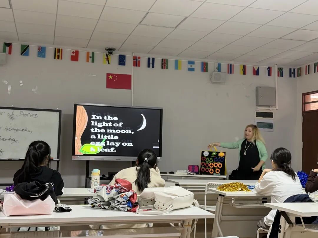 公开课《学前教育外语教学》由国际学院外籍教师 FIRNCI ZEYNEP BEGUM 主讲。课程以经典绘本故事《The Very Hungry Caterpillar》为主线,巧妙运用布书等多样化教具,生动展示了如何面向幼儿开展外语教学活动。学前教育专业的学生积极参与,课堂气氛活跃,师生互动良好,充分体现了学生在实际教学情境中的积极投入与良好配合。