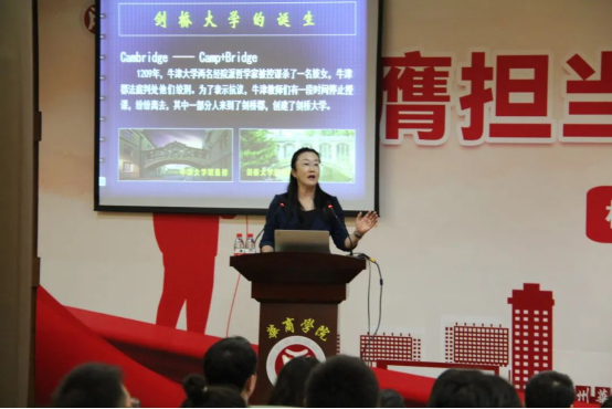 回雁雁院长通过大家非常熟悉的诗人徐志摩的《再别康桥》引发对剑桥牛津历史文化的关注,通过两所大学走出来的杰出人物代表的介绍,阐述了剑桥、牛津两所学校对人类社会发展做出的巨大贡献及深远影响,进而引出了讲座的主题。