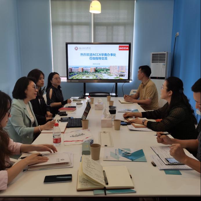 2023年6月30日ACCA广州办公室教育关系部王静怡和叶瑞梓来我院进行座谈交流,国际学院院长回雁雁,会计学院陈蒙梦,国际学院直属党支部书记杨李军、行政秘书郝自秀、教务秘书肖泽林、ACCA专员姚晓敏参加座谈。