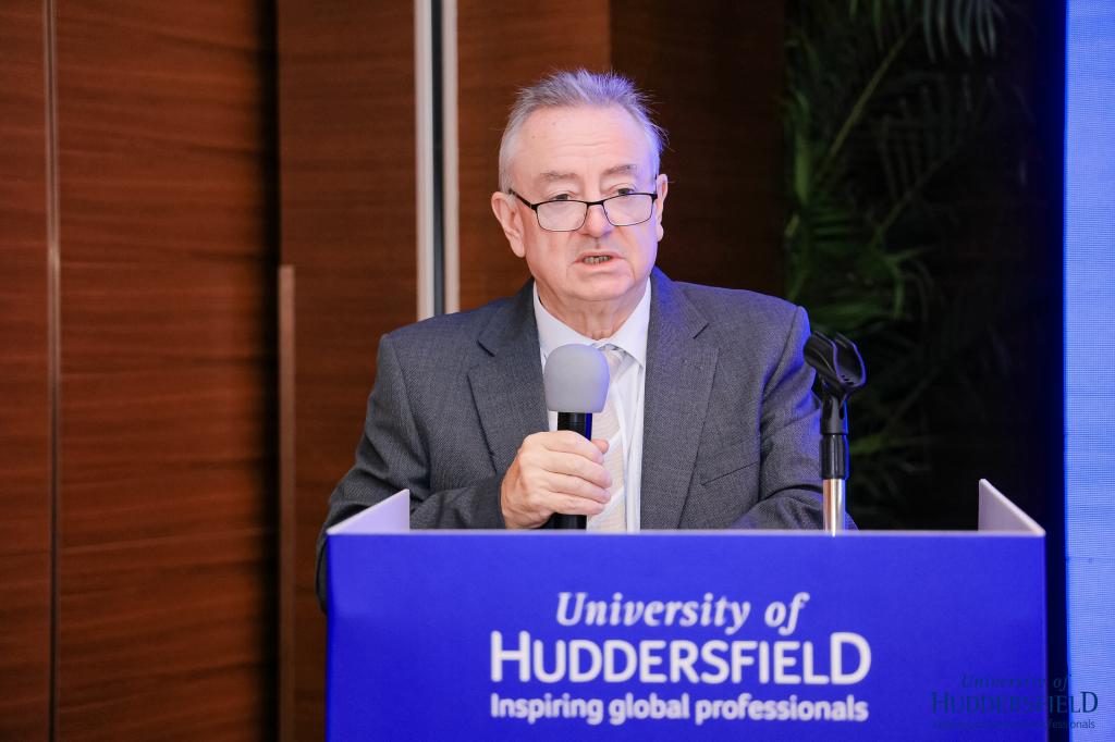 陈甲先生与大家分享了中国办公室的成长历程与未来展望,强调了中英两国在教育、科研、文化等多个领域的紧密合作和深入交流。他表示,哈德斯菲尔德大学一直秉持开放、创新、合作的理念,积极参与国际教育交流活动,努力培养具有国际视野和创新思维的人才及为国内的教育、公益事业持续作出积极贡献。