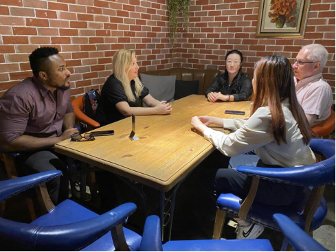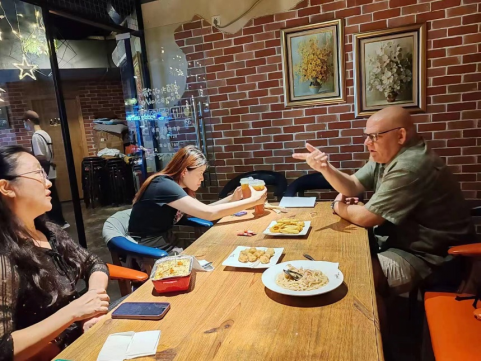 Begum Firinci教授伉俪(左三左四)与国际学院教师讨论
