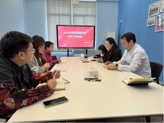 2024年2月23日,广州华商学院国际学院在启智楼408会议室召开了2023-2024学年第二学期开学工作会议。会议由国际学院院长回雁雁主持,国际学院直属党支部书记兼辅导员杨李军、教学秘书何家丽以及全体教职工参加了会议。