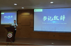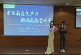 首先,国际学院直属党支部书记杨李军发表致辞,他表示这次比赛极具鲜明的时代意义,旨在让大学生在了解“新质生产力”及“高质量发展”的内涵的同时提升大学生英语水平、拓宽国际视野,展示当代大学生的青春活力。
