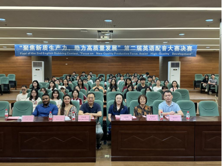 习近平总书记在中共中央政治局第十一次集体学习时强调,要加快发展新质生产力,扎实推进高质量发展。为了让大学生了解新质生产力力的内涵、发展及影响力,用英语讲好中国发展新质生产力的故事。自2024年4月以来,广州华商学院国际学院联合国际交流与合作处举办了“聚焦新质生产力,助力高质量发展”第二届英语配音大赛,通过选手准备配音视频、初赛遴选,2024年5月28日,在广州校区图书馆学术报告厅举行了决赛。国际交流与合作处处长王文忠、国际学院院长回雁雁、外国语学院副院长杜秀君、国际学院直属党支部书记杨李军、加纳籍教师Frank Larbi博士、巴基斯坦籍教师Aneela Qadir博士以及来自国际学院、外国语学院、文学院、健康医学院、管理学院、人工智能学院、经济贸易学院、教师教育学院的120多位大学生现场观摩了决赛。
