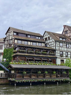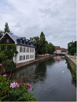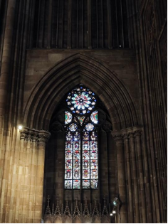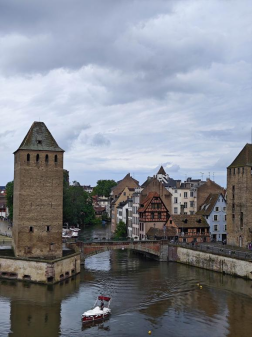 研学第一天,一行人来到位于法国东部的斯特拉斯堡,与广州华商学院名誉校长莱恩教授的助手杨博士伉俪会面。杨博士及其夫人带着研学团漫步在克勒贝广场,随后来到斯特拉斯堡大教堂。大教堂尖塔高耸入云,壮丽的哥特式建筑展示着中世纪建筑的魅力,参观教堂内部,研学团一行人惊叹于眼前富有精致图案的彩绘玻璃窗和圆形玫瑰窗,窗外明亮的映衬让人觉得图案更加惊艳。