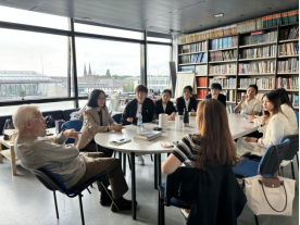 参观完斯特拉斯堡大教堂,研学团来到了莱恩教授的超分子科学与工程研究所并与其会面。莱恩教授百忙抽空,并十分亲切地与研学团开展了讨论,从学术到生活方方面面。同时,莱恩教授也耐心解答了研学团师生关于教授如何成为化学领域的顶尖科学家并获得诺贝尔奖的一些疑问。当得知莱恩教授已经85岁的高龄但仍旧在科研一线上不断奋斗与突破,这种积极进取的精神让研学团师生感慨万分、佩服不已。