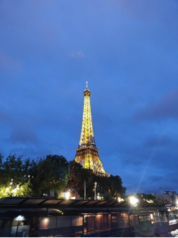 结束法国诺曼底商学院的参观后,研学团驱车来到埃菲尔铁塔。大家搭上了前往塔顶的缆车,看着地面的建筑随着缆车的爬升在一点一点变小,直至来到了埃菲尔铁塔的平台上,俯瞰下去巴黎好似能够尽收眼底。夜幕降临,一行人乘上了塞纳河的游船,欣赏两岸的夜景,沿途岸边餐馆的顾客友好地与船上的旅客打招呼。大家静听水浪拍打的声音,远远看着亮灯的埃菲尔铁塔照亮整座城市。