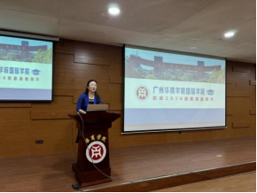 回雁雁院长首先向全体新生作了简短的自我介绍,并回顾了华商学院及国际学院的创办历程。她介绍道,国际学院自2015年成立以来,致力于为学生提供优质的国际化教育平台。学院依托丰富的办学资源和优势,与全球多所知名高校和教育机构建立了广泛的合作关系,为学生提供了多元化的学习与交流机会。