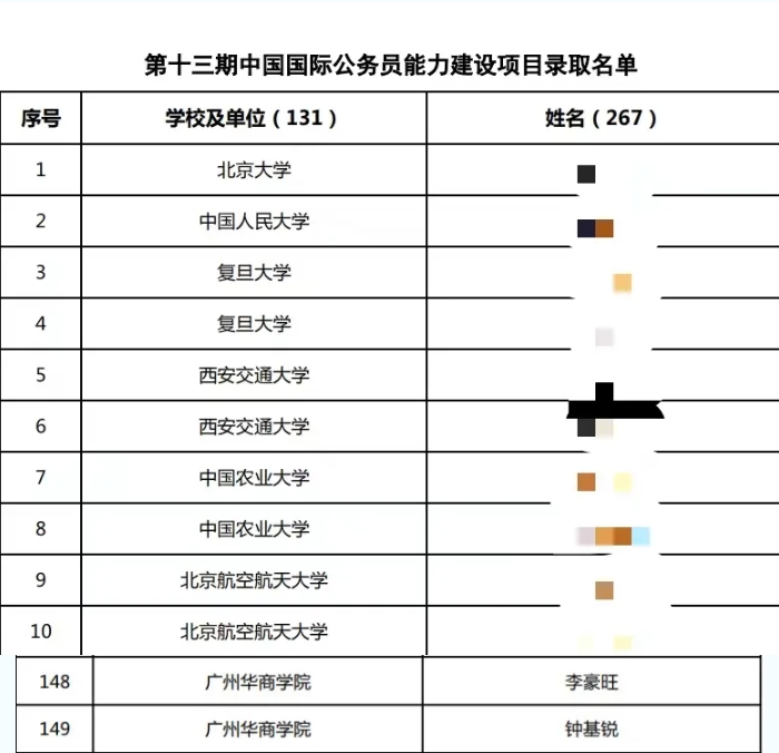 经查阅录取名单,全国只有3所民办院校入围,我校是广东唯一入围民办院校。在项目培训期间,2名学生将与北京大学、清华大学、复旦大学、同济大学、澳门大学、英国兰卡斯特大学、美国哥伦比亚大学、澳大利亚悉尼大学等国内外知名高校和机构的优秀青年一同学习提升。