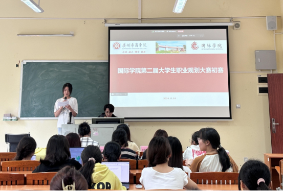 在就业市场竞争加剧的背景下,大学生们面临着多样化的职业选择和前所未有的挑战,因此制定明确的职业规划显得尤为关键。为了帮助学生树立正确的职业观和就业观,广州华商学院国际学院于11月18日在启智楼201举办了大学生职业规划比赛初赛。本次比赛由国际学院关慧慧老师、郝自秀老师和姚晓敏老师担任评委,国际学院八名同学报名参加了本次比赛初赛选拔,他们分别是:来自24级英语专业的袁梓锋,23级国际经济与贸易专业的冯瑞,24级会计学专业的翟恩培、刘雅文、玛伊代·马穆提江,以及24级学前教育专业的彭灿、余晓诗、邱慧婷。