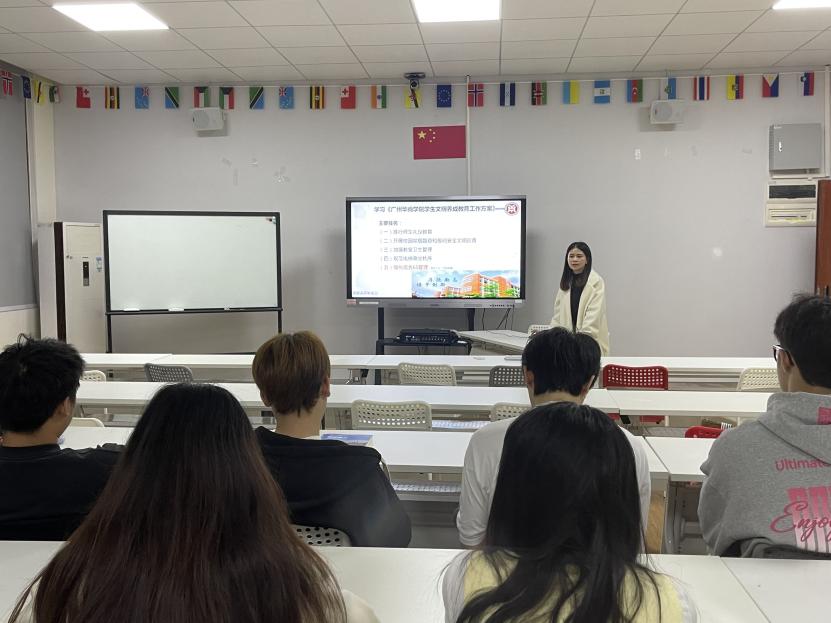 随后,关慧慧老师与郝自秀老师带领同学们学习了学校近期下发的文件,包括:《广州华商学院学生文明养成教育工作与方案》、《广州华商学院开展校园禁烟督查和夜间文明安全巡查方案》、《广州华商学院教室卫生环境提升工作方案》、《关于进一步加强学生宿舍作息管理的通知》、《广州华商学院关于开展2024年秋季学期学业帮扶工作的通知》。两位老师详细解读了这些文件的内容和精神,让同学们深刻理解学校在学风建设、学生文明养成、校园安全管理等方面所做的努力和期望。她们强调,这些文件不仅是学校管理的需要,更是为了同学们的健康成长和全面发展。