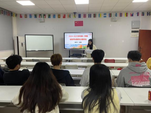 为深化国际学院的学风建设,提升学生的纪律观念,培育学生优良的学习与行为习惯,我院于2024年12月11日至18日举办了以“共筑优良学风,助力成长成才”为主题的学风建设班会。在此期间,国际学院学工办主任关慧慧老师与辅导员郝自秀老师分别针对各自负责的班级,组织并召开了9场班会。