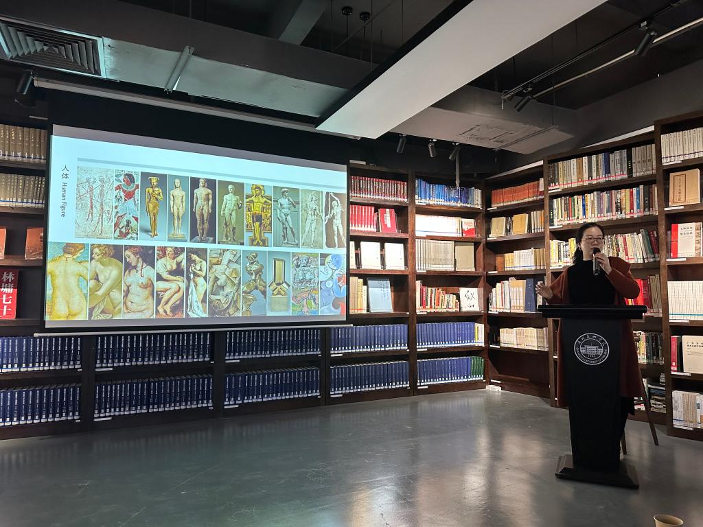 广州美术学院图书馆馆长刘淑贤教授介绍了广州美术学院的发展历史以及馆藏特色珍贵文献,并希望通过讲座和参观,广州华商学院师生能够对西方美术作品有较清晰地了解和认识。杨帆博士从西方艺术的核心构成三大要素——形式、主题、内容讲起,用一幅幅在人类文明史中具有代表性的美术作品来逐一说明。