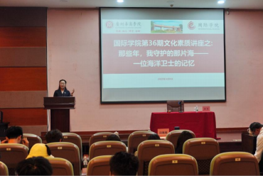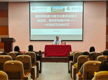 为丰富校园文化氛围,拓宽大学生的知识面和对海洋文化的认 识,广州华商学院国际学院 2025 年 4 月 8 日在广州校区举办了国际 学院第36 期文化素质讲座,国家海洋维权管理专家吴壮局长为师生 做了题为“那些年,我守护的那片海—一位海洋卫士的记忆 ”的讲座。 国际学院回雁雁院长、学工主任关慧慧老师、ACCA 专员姚晓敏以及 来自来自国际学院、会计学院、健康医学院、教师教育学院、文学院、 传播与传媒学院的 100 多名大学生聆听了讲座。回雁雁院长主持了讲 座。