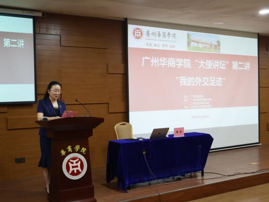 为培养具有全球视野与国际竞争力的新时代青年,构建开放包容的国际化育人环境,深化青年学子对人类命运共同体理念的认识,广州华商学院“大使讲坛”第二讲分别于4月8日、22日在肇庆校区、广州校区举办,广东省人民政府外事办公室原主任傅朗为本次讲坛的主讲嘉宾,他以“我的外交足迹”为主题分享了多年的外交经历和智慧。本次讲坛由国际学院、科研处和肇庆校区党政办联合承办,习近平外交思想研学社和肇庆校区学工办协办。