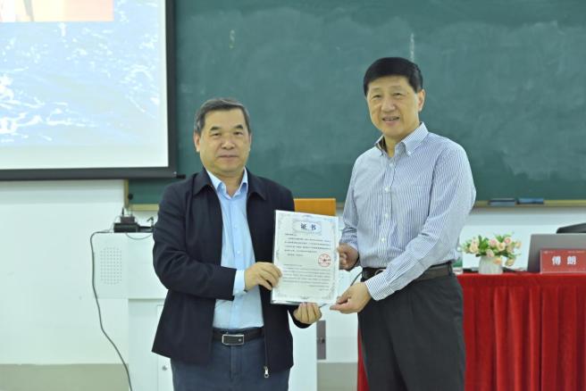 (广州华商学院焦方太副校长为傅朗主任颁发“大使讲坛”嘉宾证书)