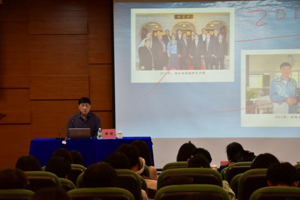 傅朗主任以五大洲地理分布为脉络,结合与各国政要的深度交往及率团出访的丰富阅历,生动诠释了四十余年的外交实践与智慧。讲座伊始,傅主任便向师生们阐明了一名优秀外交官的核心素养——“心中有祖国,眼里有世界”。随后,通过极具现场感的外交照片和真实案例,深入剖析了外交官必备的危机公关艺术与临场应变能力;结合与各国政要的互动经历,深刻阐释了同理心在构建外交情感纽带中的关键作用,和平理念是消融外交坚冰的暖阳,而外交艺术的精妙往往蕴藏于细节之中,他更以自身多才多艺的特质为例,生动展现了艺术在外交舞台上的独特魅力与影响力。