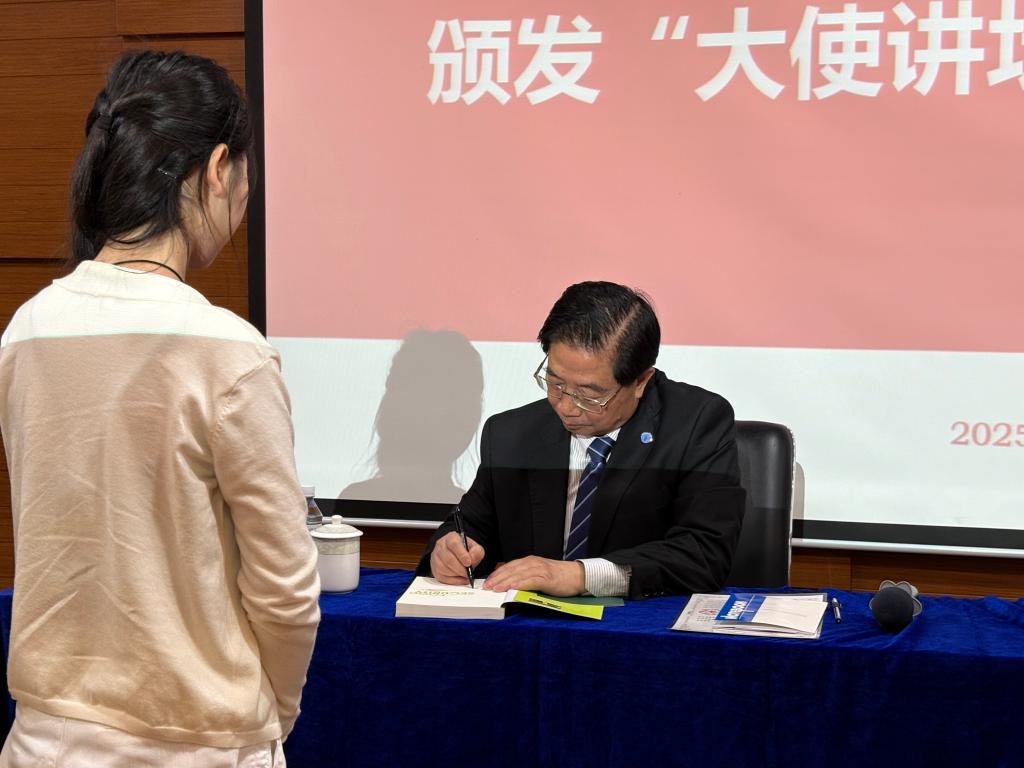 国际学院回雁雁院长在总结中表示非常感谢何昌垂院士在百忙中抽时间给大学生分享在联合国的工作经历,何院士是一位杰出的科学家、经验丰富的外交家,还是致力于培养国际胜任力的专家,他的几本专著希望同学们能够认真研读,通过阅读和听讲座,有效拓展国际视野,激发创新思考。国际学院从2023年开始就注重营造多元文化氛围和参与中国联合国协会的各项重要活动,但也清晰地认识到在外交事务和国际问题方面,大学生们近距离接触外交官的机会还是很少,“大使讲坛”为大家提供了一个很好的平台和机会,希望同学们多参与,学习这些杰出外交官的丰富经历,拓宽视野,提升能力,开拓人生的新局面。