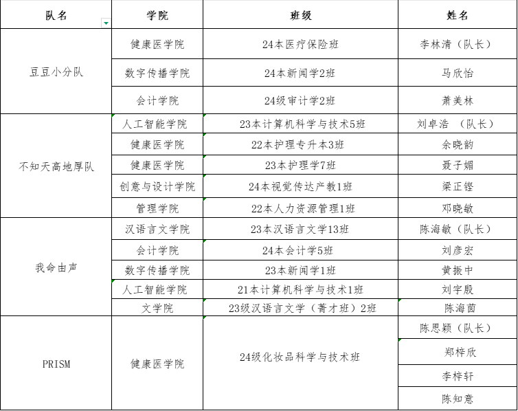 健康医学院李舒雨(队长);国际学院余意;
