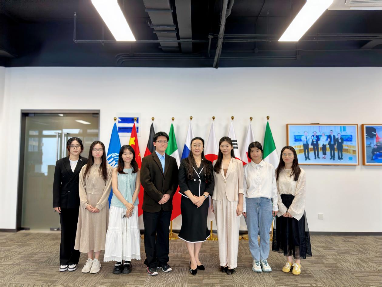 为深化国际化人才培养,助力学生拓展全球视野,系统了解联合国等国际组织的发展历程、运作机制及人才需求标准,2025年5月15日,国际学院组织师生赴杭州参访联合国工业发展组织第四次产业革命加速器(UNIDO)。本次参访由国际学院回雁雁院长、辅导员郝自秀老师带队,23级英语专业石睿妮、23级会计学专业劳雅怡、刘雅文以及24级国际经济与贸易专业刘嘉怡等优秀学生代表随行。参访期间,UNIDO技术官员陆芃芃、张佳文热情接待了代表团,并就相关议题进行了深入交流。