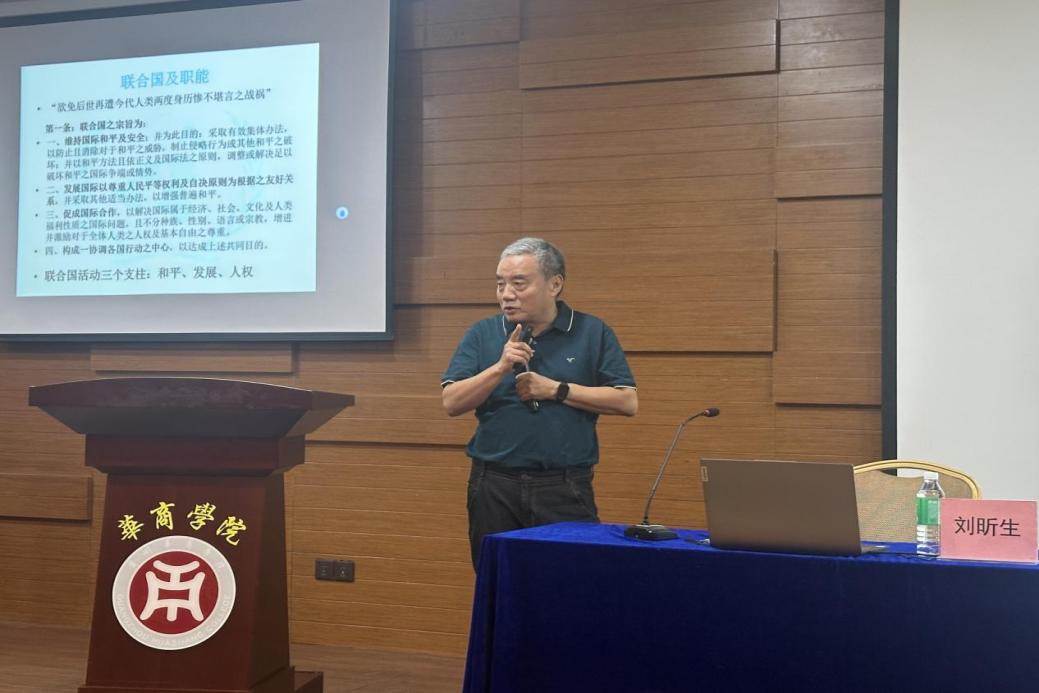 为拓宽学生国际视野,增进其对中国外交事务的理解,并培养参与国际组织与全球治理的能力,广州华商学院国际学院自2025年3月起承办“大使讲坛”系列活动,迄今已成功举办五场。值2025级新生入学之际,第六场讲座于9月18日顺利举行,特邀长期任职于中国外交部国际司及联合国人权理事会的资深外交官刘昕生大使担任主讲。本场讲座由国际学院院长回雁雁主持,学生工作负责人吴锦涛、辅导员廖远玲、国际学院全体新生,以及健康医学院、会计学院、文学院、人工智能学院等328名学生共同参加。