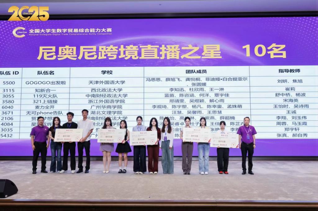 作为打通“理论学习 - 实践锤炼 - 人才输送”全链条的重要平台,大赛自启动以来便点燃了全国高校的参与热情。2025年第四届全国大学生数字贸易综合能力大赛初赛阶段,2000余支队伍从全国31个省市自治区集结,涵盖国际贸易、电子商务、市场营销等多个专业领域。选手们围绕数字贸易合规、跨境电商运营、数据驱动决策等核心议题展开较量,用扎实的专业知识搭建商业模型,以创新思维设计解决方案。历经书面评审、线上模拟实战、区域突围赛等多轮严苛选拔,117支精英队伍最终站上决赛舞台,在为期3天的巅峰对决中,通过案例分析、现场答辩、直播实战等环节,全方位展现团队协作能力、应急决策能力与职业素养,不少队伍的方案还获得了现场企业评委的意向合作邀约。