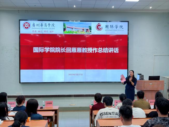 为全力迎接学校本科教学合格评估,2025年3月27日下午,广州华商学院国际学院在励志楼C408召开了2025年本科教学合格评估学生动员大会。国际学院院长回雁雁、副院长张真、学工办主任关慧慧、学院团委书记郝自秀、各班级班主任及百余名学生代表共同参会。会议由学工办主任关慧慧主持。