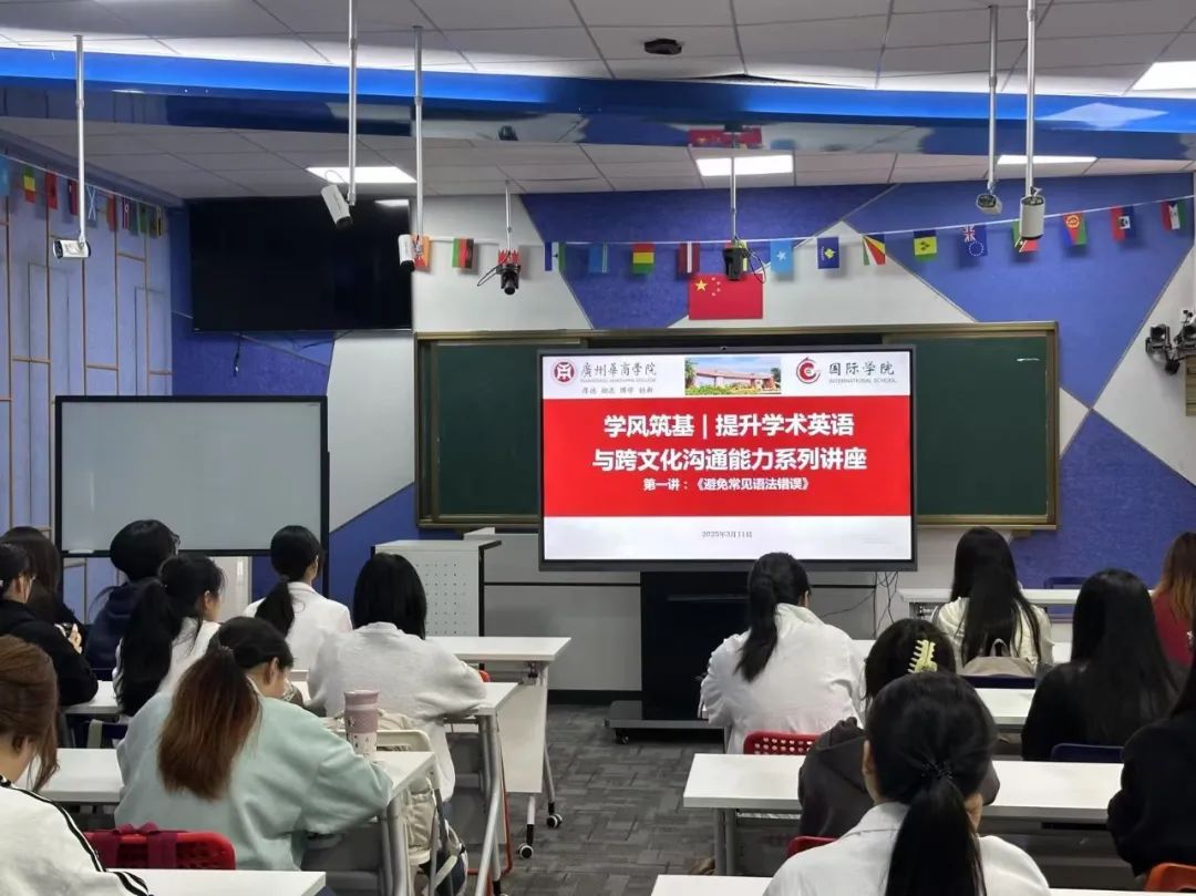 广州华商学院国际学院携手新加坡中汇学院,本学期将面向全校共开展10场以“学风筑基|提升学术英语与跨文化沟通能力”为主题的系列讲座,旨在提升大学生英语使用的规范与严谨性,强化英语应用与国际交往能力,营造良好学风与国际化氛围。第一讲的顺利开展,为后续系列讲座打好基础,营造了浓厚的学习氛围同时,充分利用华商在海外的教学资源,搭建起友好交流、紧密合作的平台。