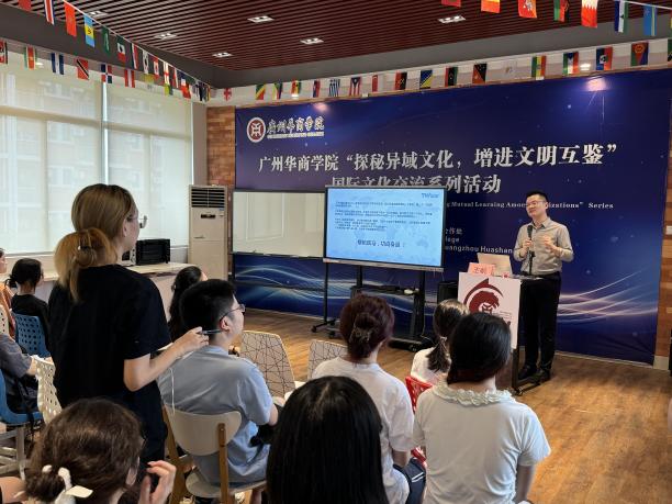为了让2024级大一新生和其他高年级大学生能够在国际市场中找到自己的职业定位,广州华商学院国际学院特邀国际商事服务专家、商伴(广东)国际企业管理有限公司创始人、盈科外服广东事业合伙人王帆先生于9月12日在启智楼501开展新生入学教育之就业创业经验分享会。国际学院院长回雁雁,部分学院教职工以及国际学院来自英语、市场营销、国际经济与贸易专业的40多位大学生参加了本次分享会。