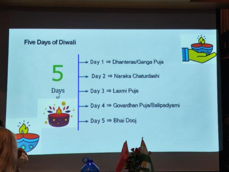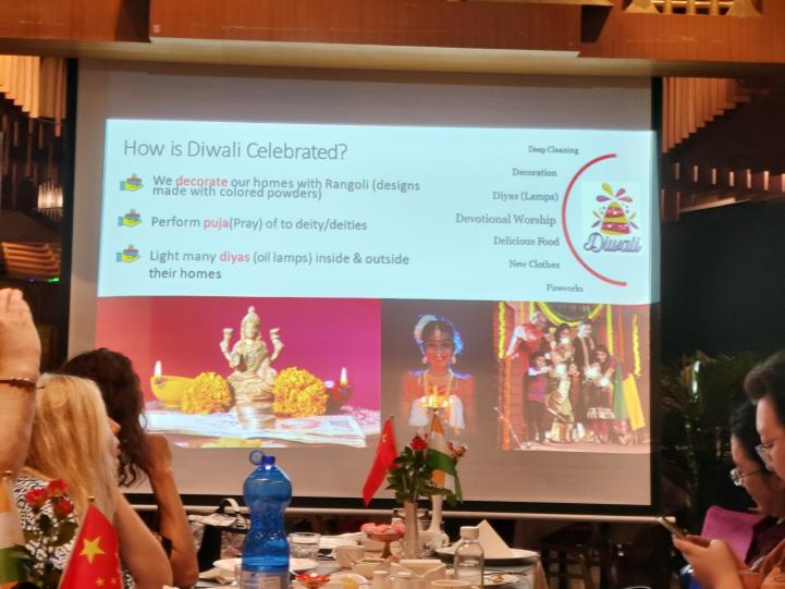 首先,Hiren Bhavsar 从排灯节(Diwali)的起源讲起,详细介绍了排灯节的由来,庆祝的时间节点及庆祝方式。为了让同学们更容易理解排灯节,Hiren Bhavsar将印度排灯节类比中国春节,介绍这个古老而又充满魅力的节日,是通过打扫房屋、装饰、团聚等活动,加强家庭和社会的凝聚力,承载着人们对美好生活的向往的节日。