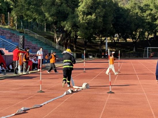 在首次增设的消防团体赛项目中,国际学院的同学们在增城消防大队的指导下,展现了良好的团队协作和应急处理能力。在盘水带项目中,24本国际经济与贸易(国际)班的关涛同学与23本英语(国际班)1班的李喆雅同学为学院赢得了全校第四名的佳绩。