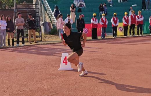 在女子4x100米接力赛决赛之战中,由22本英语(国际班)(专升本)1班的黄雅声、23本英语(国际班)1班的石睿妮、23本国际经济与贸易(国际班)1班的刘希乐、24本英语(国际)班的江怡然四位运动员组成的接力队伍,将接力棒转化作信任与力量的象征。她们在跑道上奋力拼搏,每一次棒的传递都是默契的配合,经过激烈的角逐,她们获得第二名的好成绩。