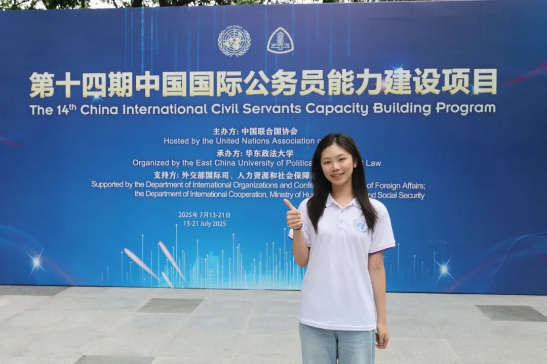 为培养具有国际视野的复合型人才,助力中国青年参与全球治理,国际学院在加强与中国联合国协会合作的基础上,经过遴选,国际学院2023级英语专业石睿妮同学参加了2025年7月13日至21日在沪举办的“第十四期中国国际公务员能力建设培训项目”。本期培训由中国联合国协会主办,得到外交部国际司、人力资源和社会保障部国际司的专项支持,由华东政法大学承办。在为期八天的培训中,石睿妮同学与来自北京大学、清华大学、复旦大学等140余所顶尖高校的300名优秀学员共同学习。国际组织高级官员、资深外交官和知名专家学者围绕联合国实务、全球治理等专题进行了系统授课。此次培训不仅深化了参训学员对国际组织运作机制的理解,更搭建了青年人才参与全球治理的实践平台,为培养新时代国际公务员后备力量提供了重要支撑。